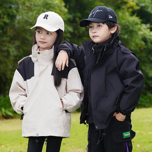 Children Thicken Detachable Liner Winter Warm Fleece Outdoor Windproof Waterproof Rain Coat Lightweight Men Women 3-in-1 Jacket