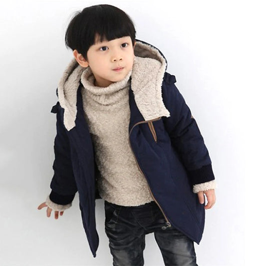 Winter Thick Boys Jackets 2023 New Warm Clothes Children Jacket Plus Velvet Padded Jacket Boy Hooded Jackets Mid-length Snowsuit