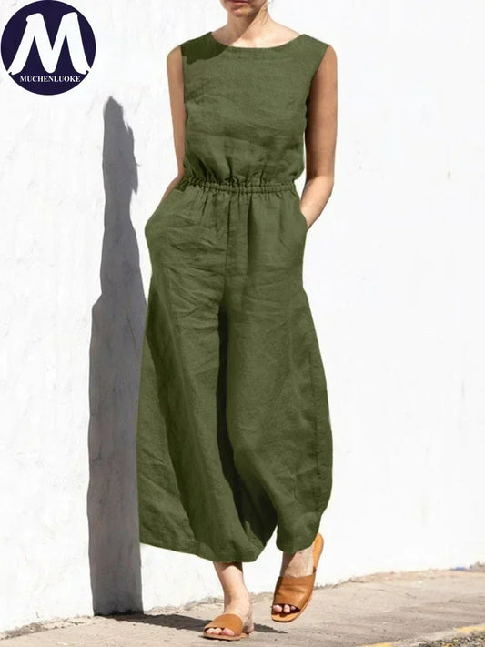 Jumpsuits for Women 2025 Summer Solid Sleeveless Long Jumpsuit Fashion Casual High Waisted Loose Wide Leg Pants Women's Clothing