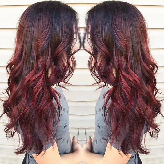 Long Wine Red Wavy Wig for Women 26 Inch Middle Part Curly Wavy Wigs Natural Looking Synthetic Black Wig for Daily Party Use