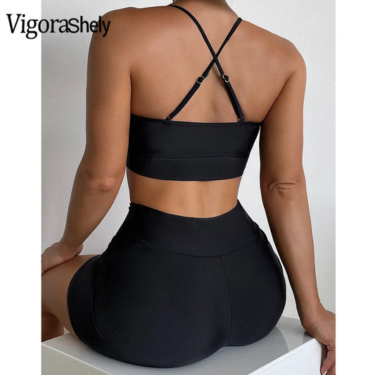 VigorCasey Sexy Black Vest Bikini Set Push Up Swimwear Women 2025 High Waist Bottom Swimsuit Biquini Backless Corss Bathing Suit