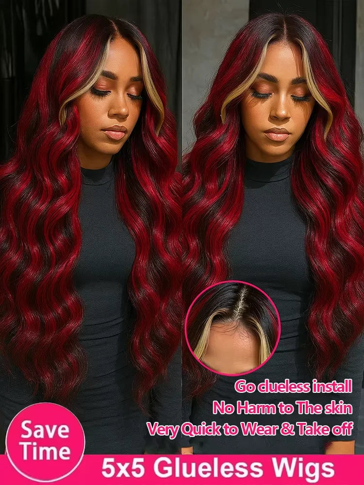 200 Density 1B/27/Red Wig 30 Inch Highlight 5x5 Glueless 99J Burgundy Body Wave Colored Transparent Lace Closure Wigs Human Hair