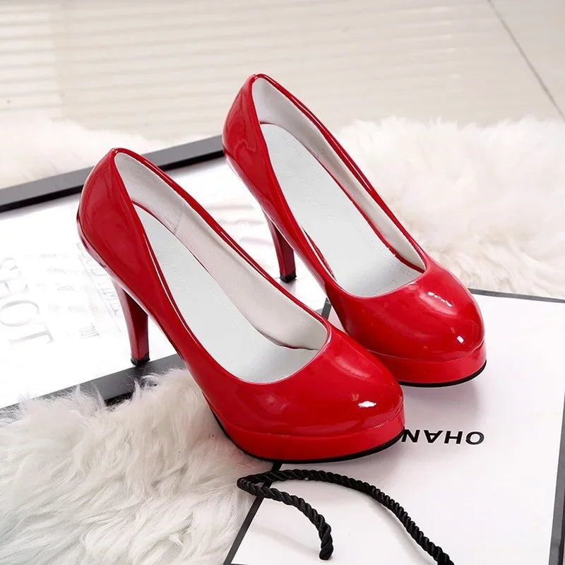 2024 Women's High-heeled Shoes Sexy Round Toe Women's Platform Heeled Shoes Patent Leather Party Dress Ladies Shoes Plus Size