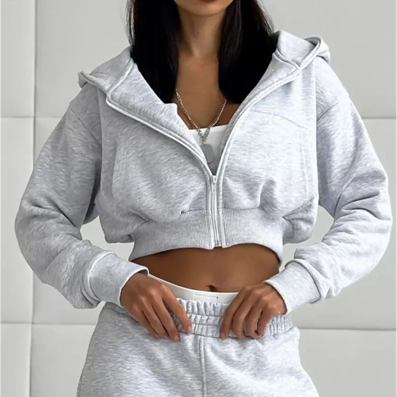 2025 New Women's Casual Long Sleeve Hooded Cropped Zip-Up Cardigan & Drawstring Sweatpants Two-Piece Active Lounge Set