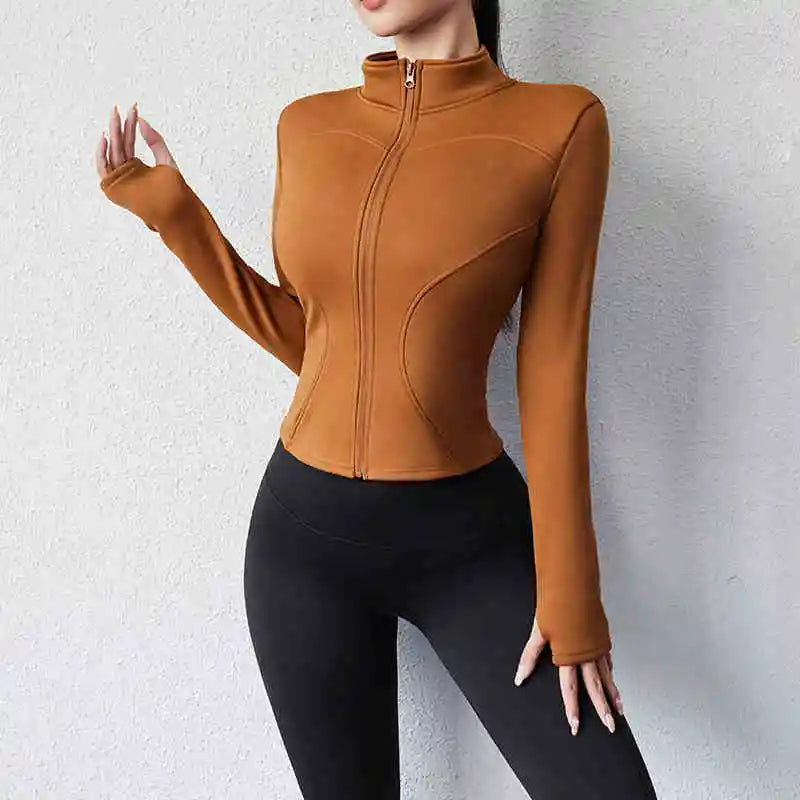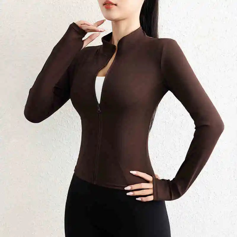 Activewear Gym Jacket Quick Dry Womens Yoga Wear High Elasticity Breathable Long Zipper Sports Fitness Top