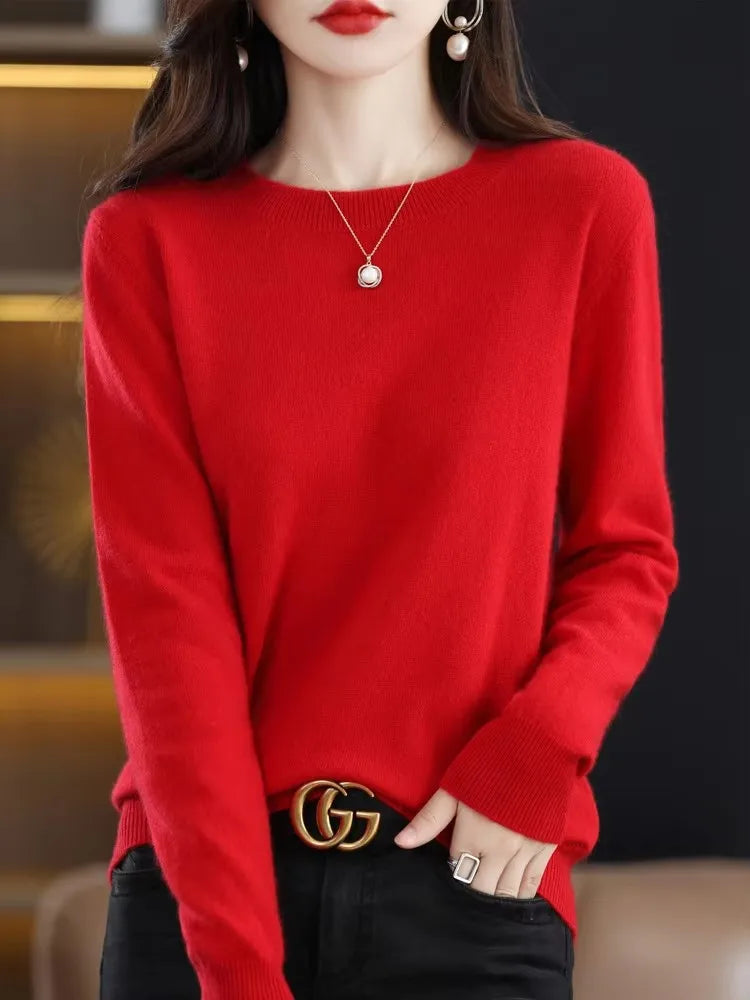 Autumn Winter Women Clothing Pullover New Fashion 100% Merino Wool Sweater Cashmere Tops Basic O-Neck Long Sleeve Knitwear