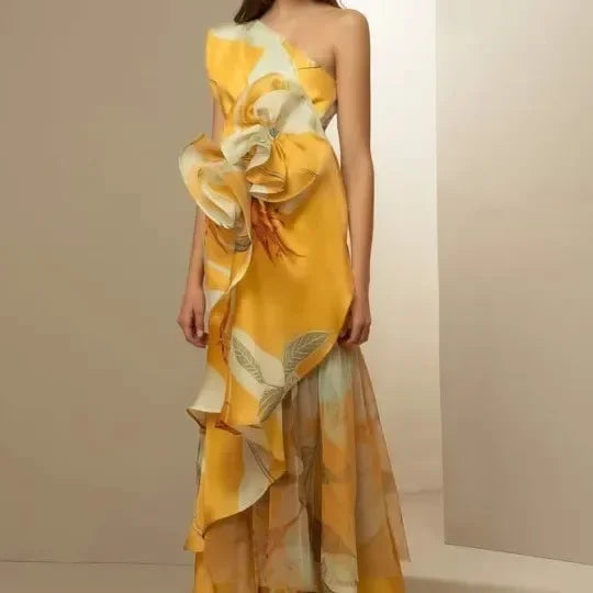 Elegant Vintage French Style Summer Dresses High Waist Casual Printed Crossbody Dresses For Women Sleeveless