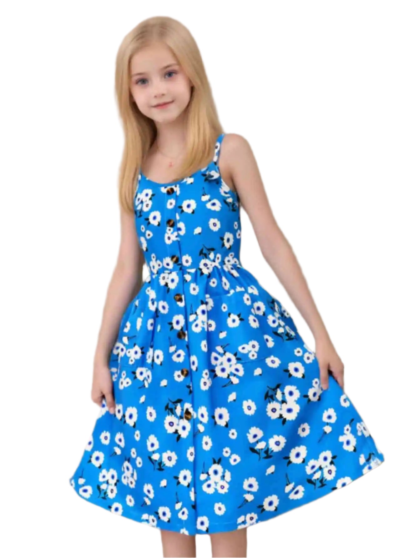 Girls' blue floral dress: light and comfortable, cool for summer, lively suspender design