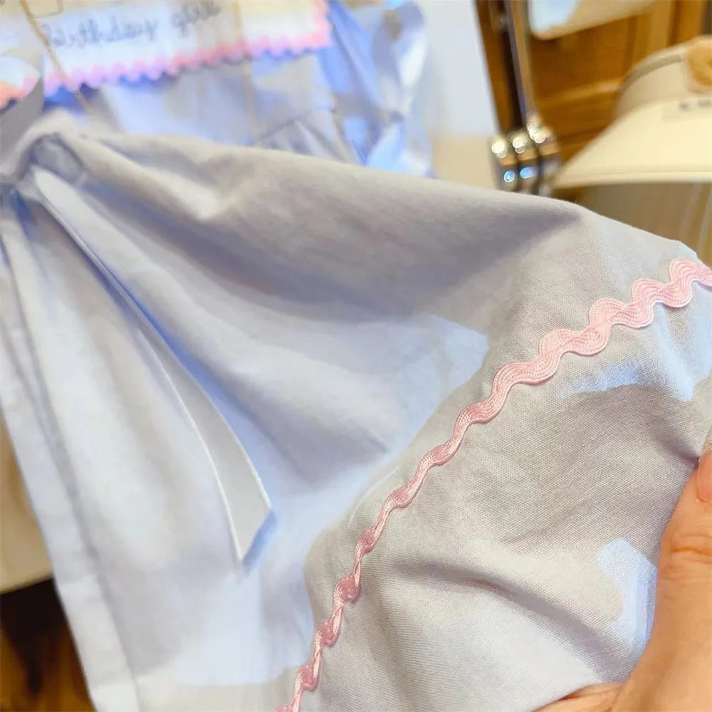 Girls Casual Dresses New Summer Blue Dress Baby Doll Collar Vest 2024 Round Collar Fashion Simple Childrens Clothing Lovely