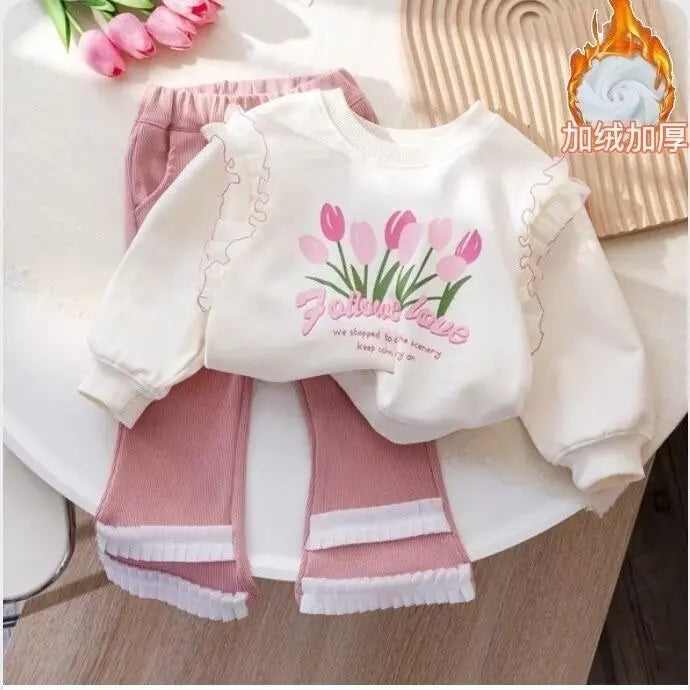 Girls Clothes Sets Spring Autumn Blouses Tops + Pants Outfits For Children Clothes Set Sweet Kids Clothing 4 6 9 T2Pcs