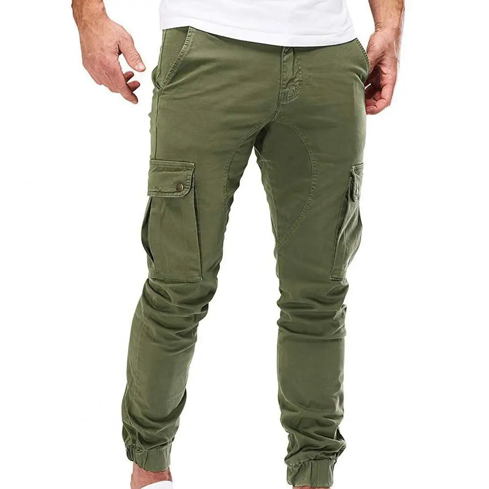Men Pants Drawstring Solid Color Ankle Banded Casual Multi Pockets Cargo Pants for Daily Wear