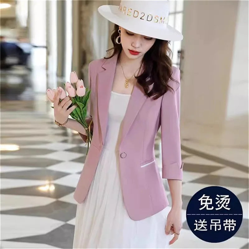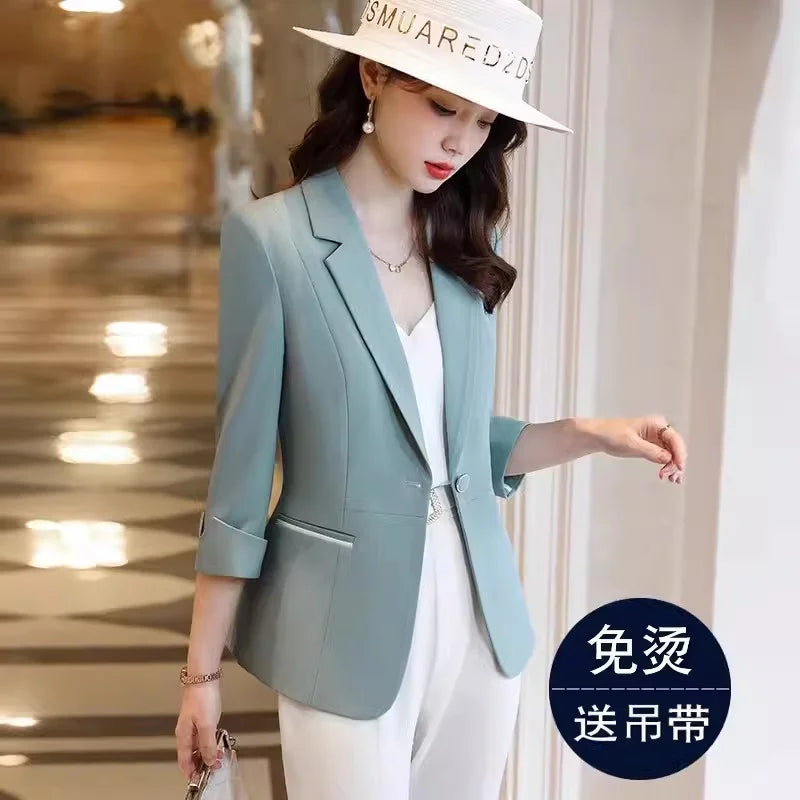 S-4XL Apricot Suit Jacket For Women's Summer Trench Coat Green 2024 New Short Cut Slim Fit Temperament Women's Thin Blazer Lady