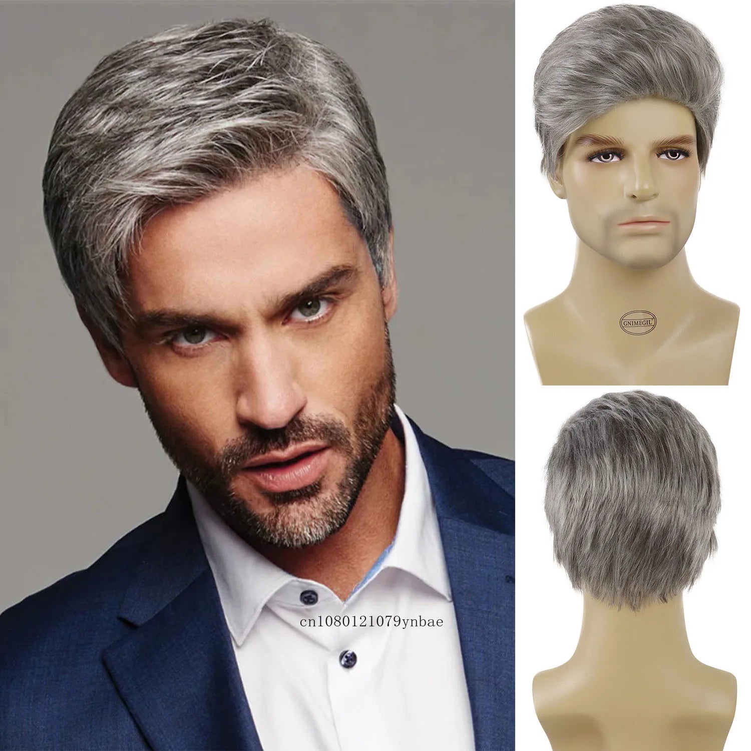 Short Wigs for Older Men Synthetic Grey Color Wig Toupees Natural Curly Wigs Daily Use Male Cosplay Costume Wig Hair Replacement
