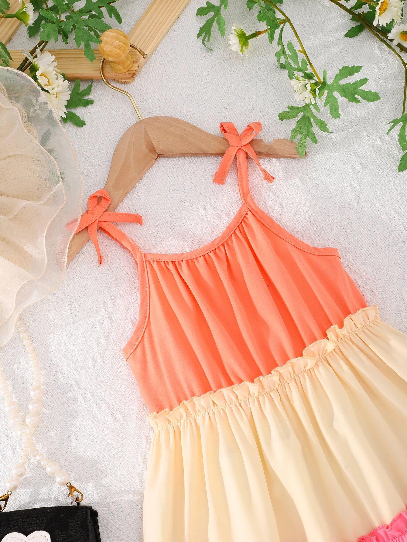 Summer New Girls Dress Casual Wear With Contrasting Color Slip Dress Holiday Beach Tour Long Dress Soft Cool And Comfortable