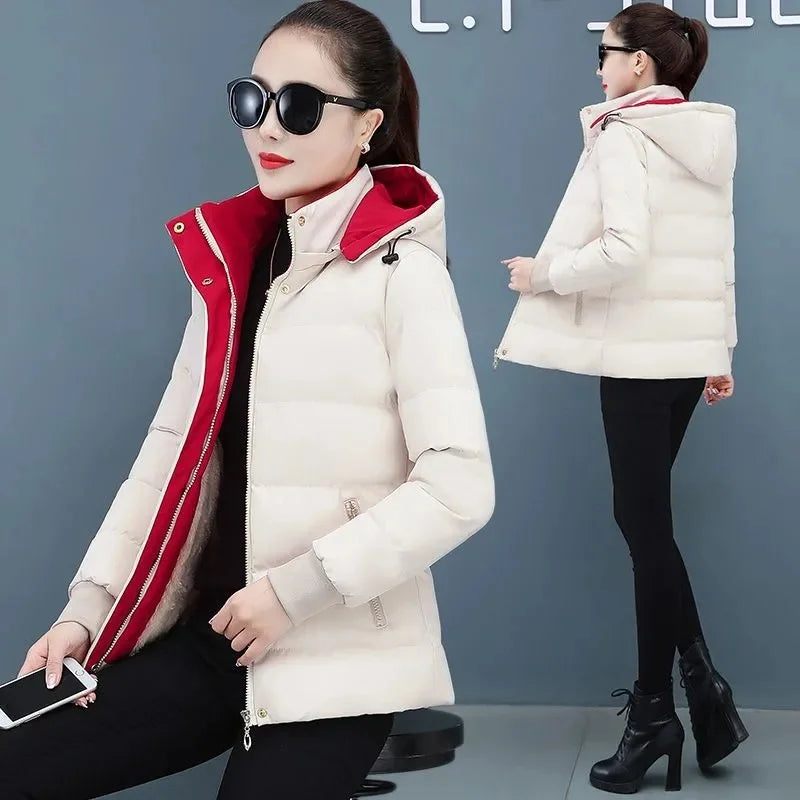 Women Winter Jacket 2025 New Velvet Cotton Padded Jacket Female Detachable Hooded Parkas Warm Cotton Coat Short Jacket Outerwear