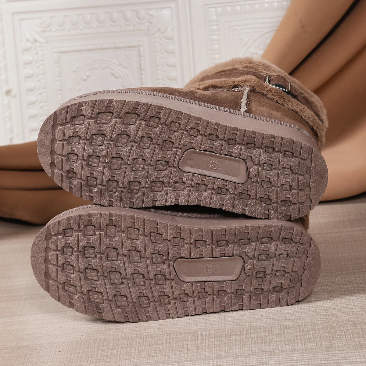Women's Single Boots Winter New Thick Soled Frosted Plush Zipper Mid-calf Boots Casual Comfort Warm Non-slip Snow Boots